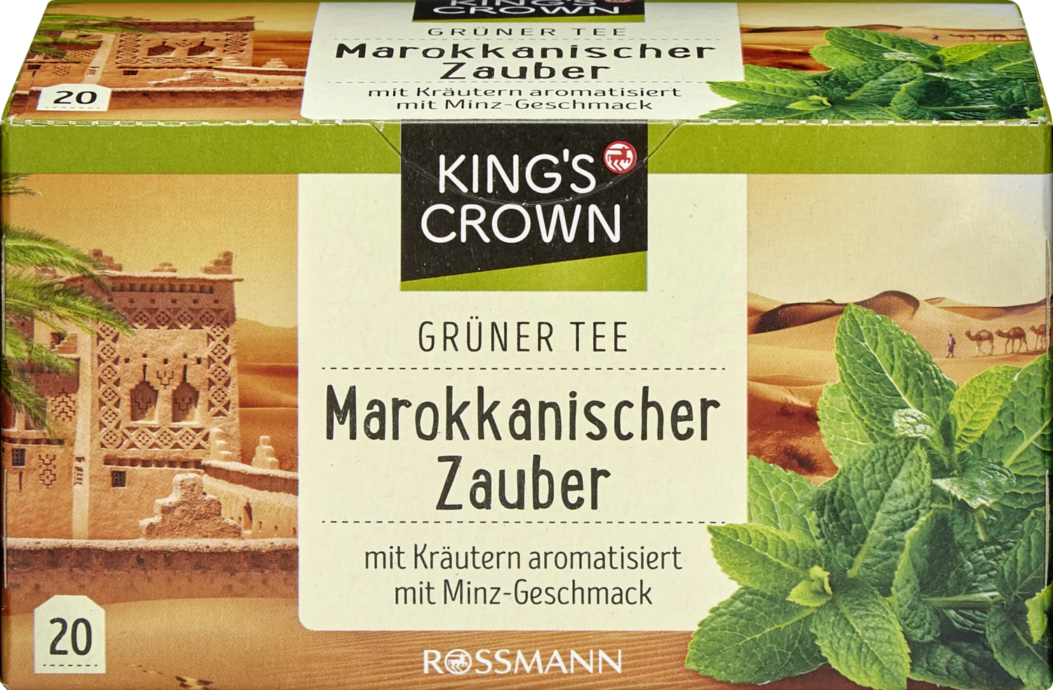 Feiner Grüntee wird mit ausgewählter Minze veredelt und zaubert so das Nationalgetränk Marokkos in die Teetasse. Die ausgewogene Teekombination wird traditionell in dickbauchigen Kannen aufgebrüht, aus denen der fertige Tee in gläserne Tassen gefüllt wird. Erfrischend-würzig und fein-herb im Geschmack wird dieser Grüntee so zum besonderen Geschmackserlebnis.