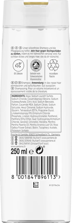 Ins nasse Haar einmassieren und aufschäumen. Ausspülen. Für beste Resultate zusammen mit der Pantene Pro-V Miracles Lift & Volume Pflegeserie verwenden. Für den täglichen Gebrauch geeignet.