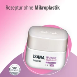 Die ISANA PRO-KOLLAGEN PERFORMANCE TAGESCREME mit dem Kollagen-Active-Booster sorgt für straffere Gesichtspartien. Sie wirkt den Zeichen der Hautalterung entgegen, verleiht der Haut Ausstrahlungskraft und Elastizität. WIRKUNG: Der pflanzliche Kollagen-Active-Booster stimuliert die Produktion hauteigener Kollagenfasern und verbessert so den Kollagenhaushalt. Die Haut wird bei regelmäßiger Anwendung straffer und die Formulierung sorgt so für mehr Elastizität und Festigkeit der Haut.ERGEBNIS: Die ISANA Pro-Kollagen Performance Tagescreme wirkt aktiv gegen lichtbedingte Hautalterung. Die Hautstruktur wird nachweislich gefestigt und Falten reduziert. Für eine straffere, geschmeidigere Haut.Verbesserung der Hautfestigkeit & Elastizität. Reduzierung der Faltentiefe bei 95% der Testerinnen**prozentualer Anteil der Personen in einer objektiven Messung nach 4 Wochen.HAUTVERTRÄGLICHKEIT: dermatologisch bestätigt.Diese Rezeptur ist zu 100% ohne Mikroplastik