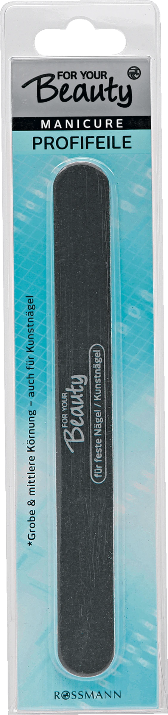 Mit der Profifeile lassen sich feste und künstliche Fingernägel mühelos pflegen. Mit der groben Körnung feilen Sie vor und glätten dann mit der feinen Seite sanft nach.