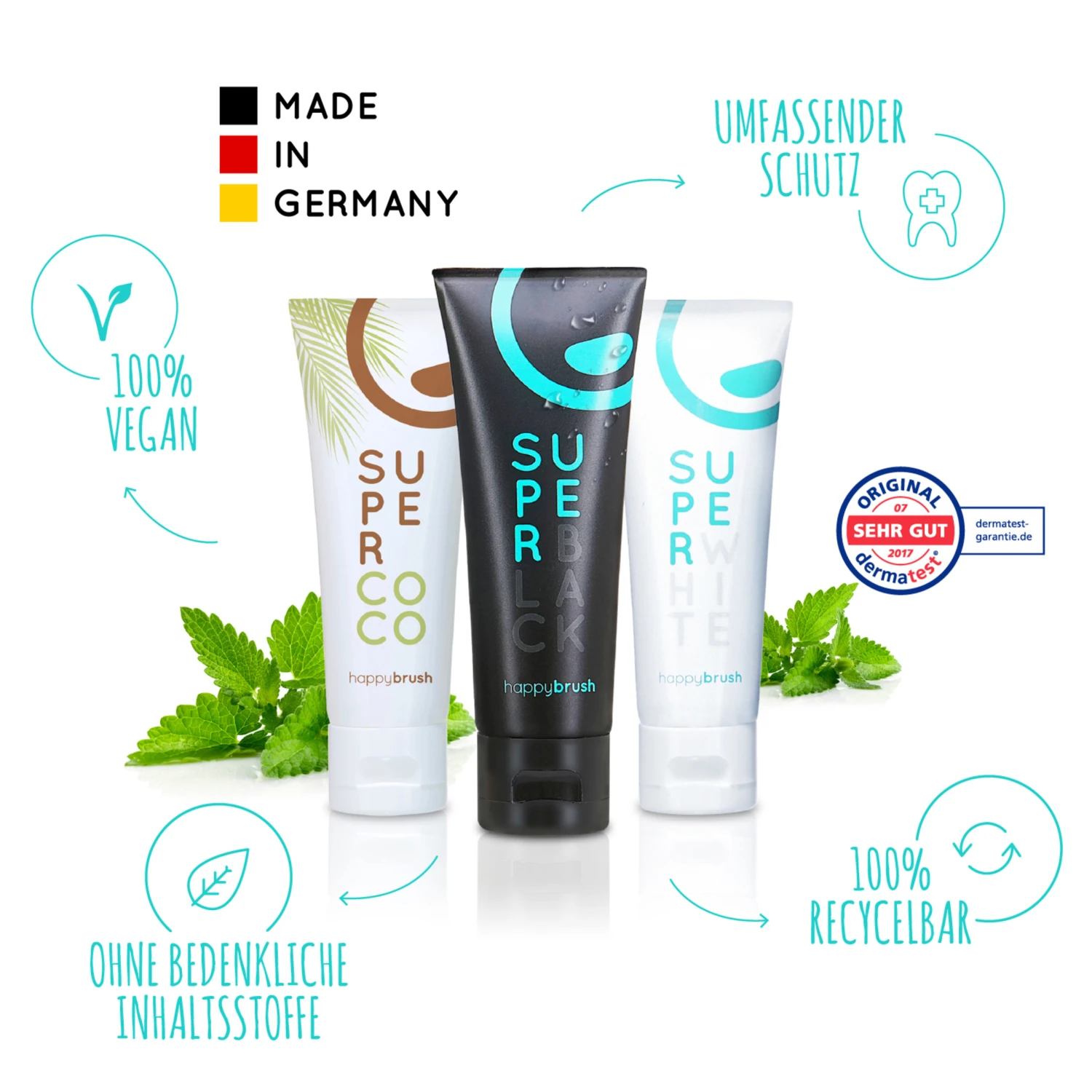 Urlaub für Deine Zähne! Meine leckere Formel mit Kokosnuss-Extrakt bringt Zahnstein und Plaque auf die Palme. Kieselsäure sorgt für natürliches, sanftes Whitening und Xylitol für eine gesunde Kariesprophylaxe und Mundflora. Vegan, glutenfrei und Made in Germany.