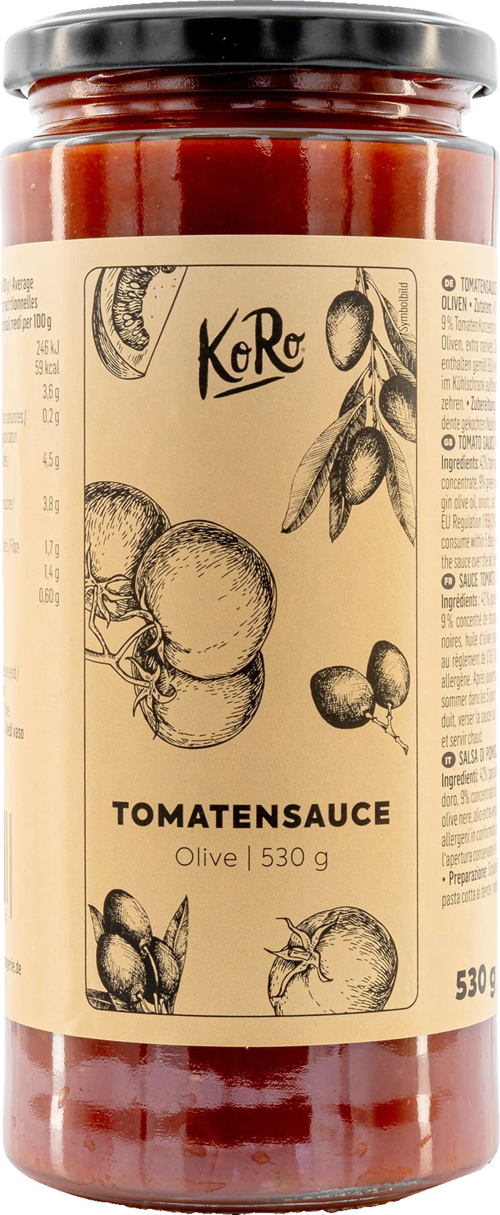 Ein Liebesduett aus jeder Menge frischer, passierter Tomaten und feinen Oliven sorgt für große Genussgefühle bei KoRo. Abgerundet mit Tomatenmark, Olivenöl und Gewürzen verwandelt sich die Soße aus Italien sofort in das neue Lieblingsessen von großen und kleinen Feinschmecker:innen. Im 530 g-Glas ist ganz viel Platz für Tomatenliebe auf Pizza, Pasta oder in der Lasagne. Und weil Essen für alle da sein sollte, ist die Soße auch für die vegetarische und vegane Ernährung geeignet. Einfach im Topf erhitzen, über das Wunschgericht geben und fertig ist das schnelle, leckere Essen mit Urlaubsgefühl!